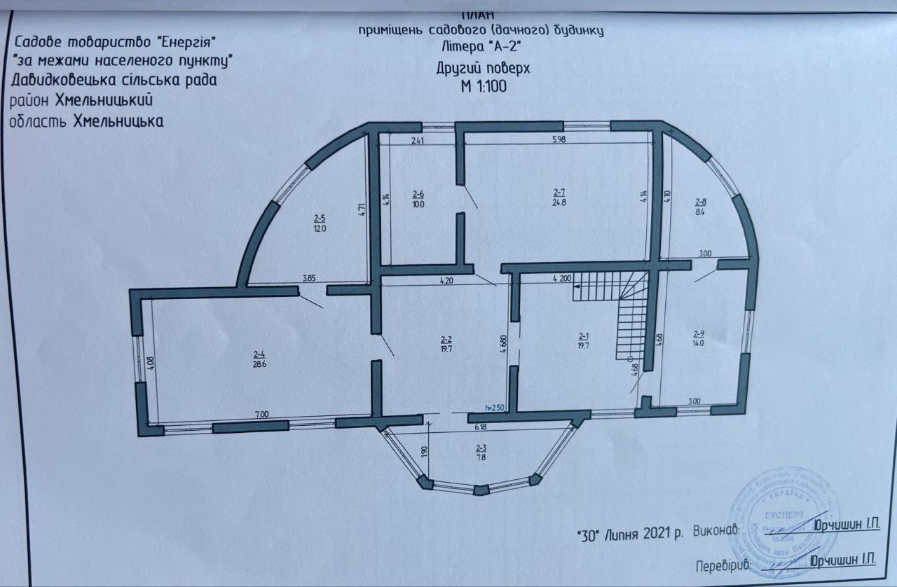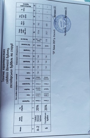 Продам цікавий комплекс в передмісті Хмельницького (Хмельницька територіальна громада). с.Давидківці, СТ "Енергія". Загальна площа будівель: 506 кв.м. Вартість: 150000$ + витрати на переоформлення Знаходиться при дорозі, фасад. Складається з садового будинку (293,2/87,1/59,3м2), має повноцінних 2 поверхи, з них: на 1 поверсі велика кухня/їдальня, санвузол, гардероб, пральня (висота поверху 2,9м), на 2 поверсі хол +3 окремі кімнати, 2 санвузли та гардероб (висота поверху 2,5м). Стан - коробка (з/бетон, пеноблоки, утеплена пінопластом, поштукатурено, дах - металочерепиця, перекриття - з/бетон) Окремо при дорозі нежитлове приміщення/госп.будівля (212,7м2). З/бетон, перекрито з/бетонними плитами та рубероїдом. Зроблені внутрішні та зовнішні роботи. Має ворота ролетного типу, великі фасадні вікна з подвійним склопакетом, захисні ролети на вікнах та дверях (висота будівлі 3,1м). Від дороги перед приміщенням встелена бруківка. Можна використовувати під любий вид діяльності. Здане в екплуатацію, отримано право власності. Ділянка рівна 6 соток (24*25м), кад.№: 6825082400:02:017:2721, Призначення: 01.05 - для індивідуального садівництва. По комунікаціям: вода - колодязь з насосом, каналізація - септик, світло - 380V, 15кВт, окрема лінія. Газ не заводився. Можливий адекватний торг. Показ за попередньою домовленістю.