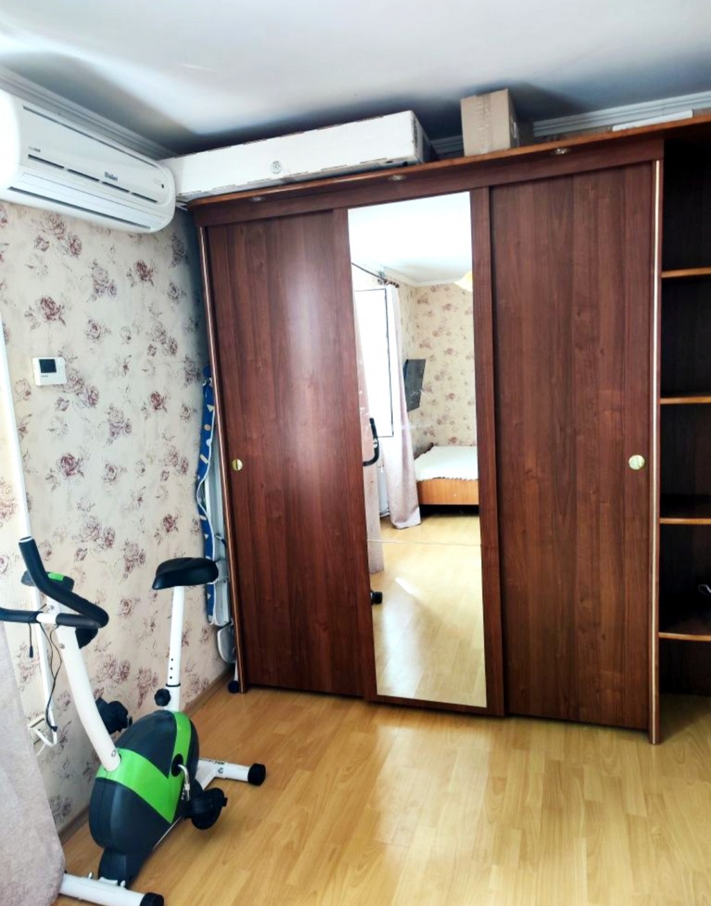 Є меблі на кухні,3 вбудовані шафи,розкладний диван та 2 спальне ліжко,шафа купе,мебльована стінка,пральна машина,холодильник,є інтернет дикий сад