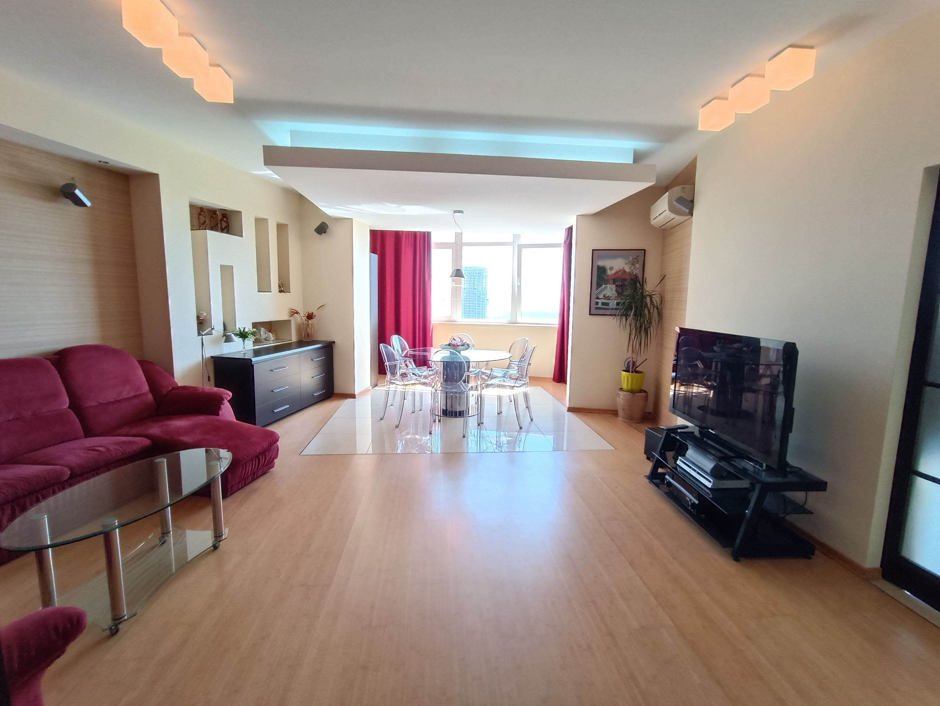 Продам 3к ЖК “Славний” по вул.Симферопольскій 11. Квартира розташована на 9 поверсі 16-ти поверхового будинку. Загальною площею 166,7м.кв., складається з двох окремих великих спалень (30,1 та 24,6м.кв.), вітальні 37,9м.кв, кухні 19,8кв., двох санвузлів (10 та 4,8м.кв) та передпокою 11,3м.кв.. В квартирі виконаний ремонт з використанням якісних матеріалів. Санвузол повністю виконаний з натурального оніксу, встановлена шведська сантехніка, ванна з гідромасажем, духова кабіна з масажем та парилкою. Гостьовий санвузол в кахлі. В житлових кімнатах підлога виконана з бамбукової паркетної дошки, а в передпокої з натурального каменю. Кожна кімната обладнана окремими гардеробами. Доволі вмістка пральна кімната з місцем для зберігання всього необхідного. По всій квартирі встановлені кондиціонери Daikin. Квартира обладнана меблями та технікою. Величезною перевагою цього будинку є власна котельня, яка забезпечує мешканців опаленням та гарячою водою. До того ж температуру в квартирі можно власноруч регулювати, а власний лічильник на тепло дозволяє контролювати витрати на комунальні платежі. Неймовірний вид на річку Дніпро! В максимальний близькості розвинена інфраструктура та все необхідне для активного відпочинку дорослих та дітей!