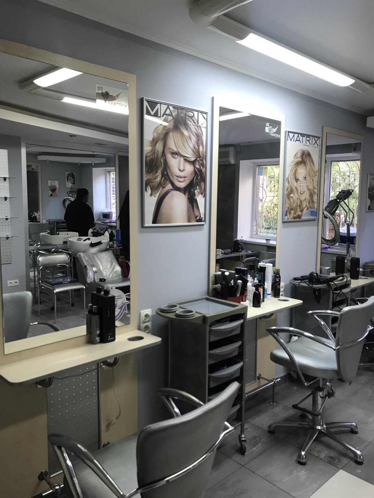 В салоні є 3 перукарських крісла,2 манікюрних столи,педикюрне крісло.