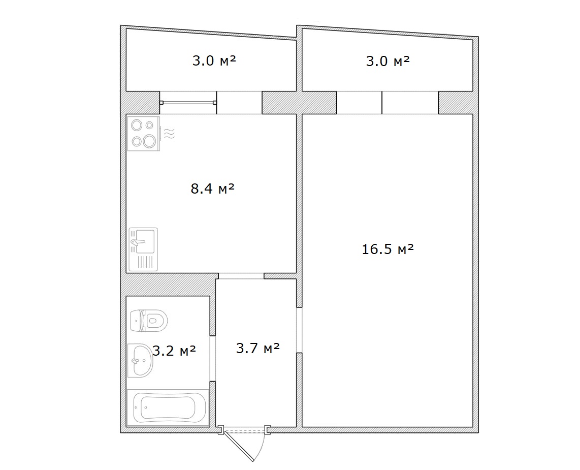 - площа квартири - 39 м2