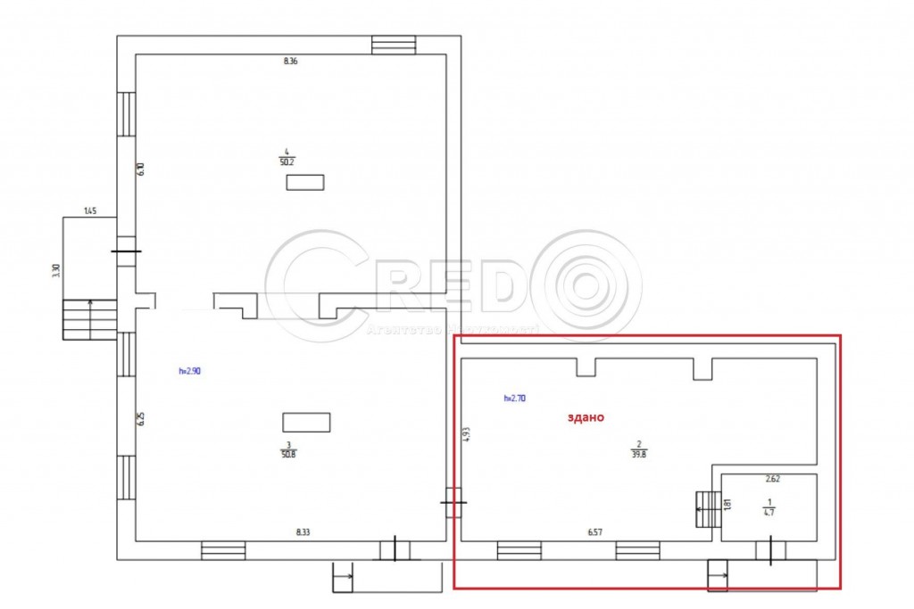 - окрема розташована двоповерхова будівля
