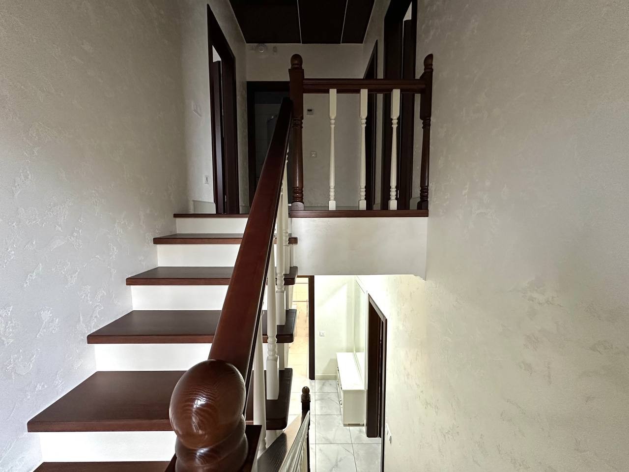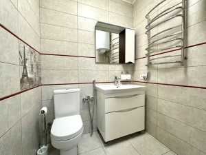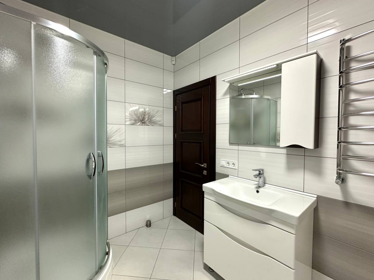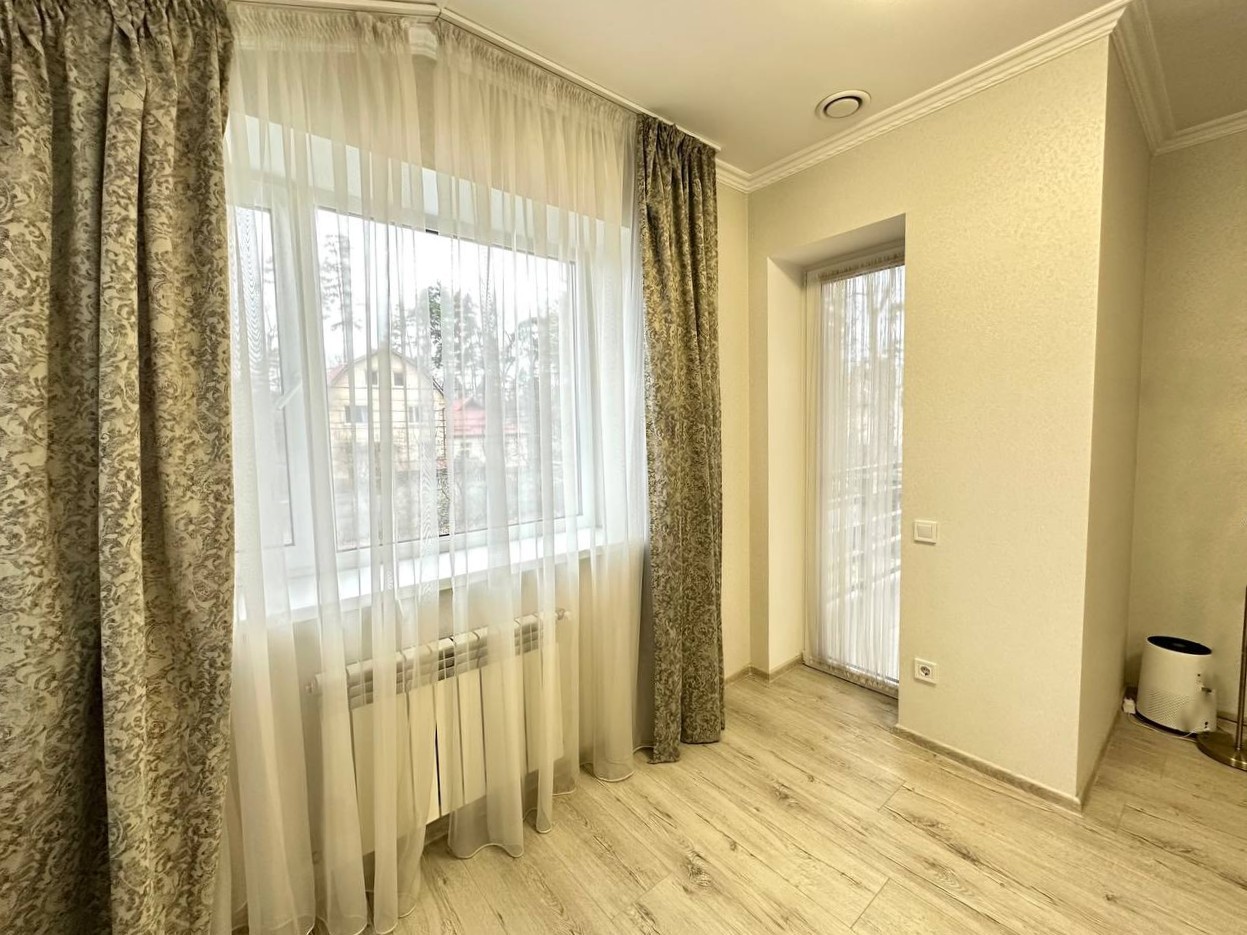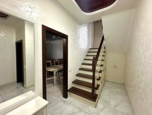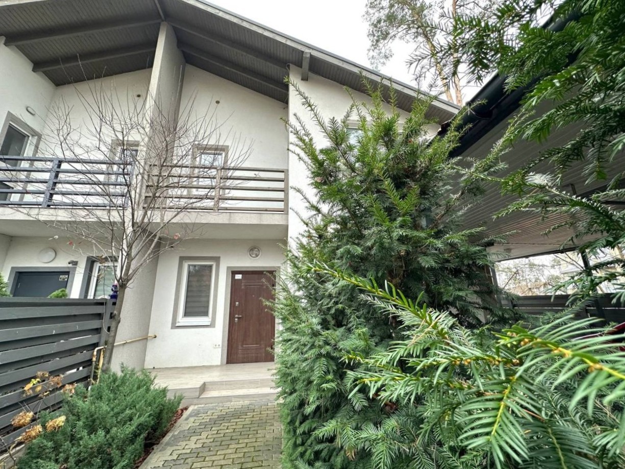 ID:776 Продаж двоповерхового дуплексу в м.Буча, по вул.Ватутіна. Загальна площа будинку - 126,3м2, житлова - 60,5м2, кухня-вітальня - 29,9м2. В будинку є всі комунікації: газ, електрика (16кВт), вода - власна свердловина, каналізація - септик, встановлена система безпеки. Зроблено якісний ремонт, сучасні меблі, сходи та двері з натурального дерева. На першому поверсі: кухня-вітальня з теплою підлогою та виходом на терасу, кабінет, сан.вузол, госп.приміщення. На другому поверсі: три спальні та сан.вузол з теплою підлогою, який має ванну і душову кабіну. З однієї спальні є вихід на балкон. На другому поверсі встановлений рекуператор повітря. Ділянка загальною площею - 2,9 сотки. Доглянутий двір з декоративними рослинами та автополивом. Паркомісце на 3 авто під накриттям. Секційні ворота.