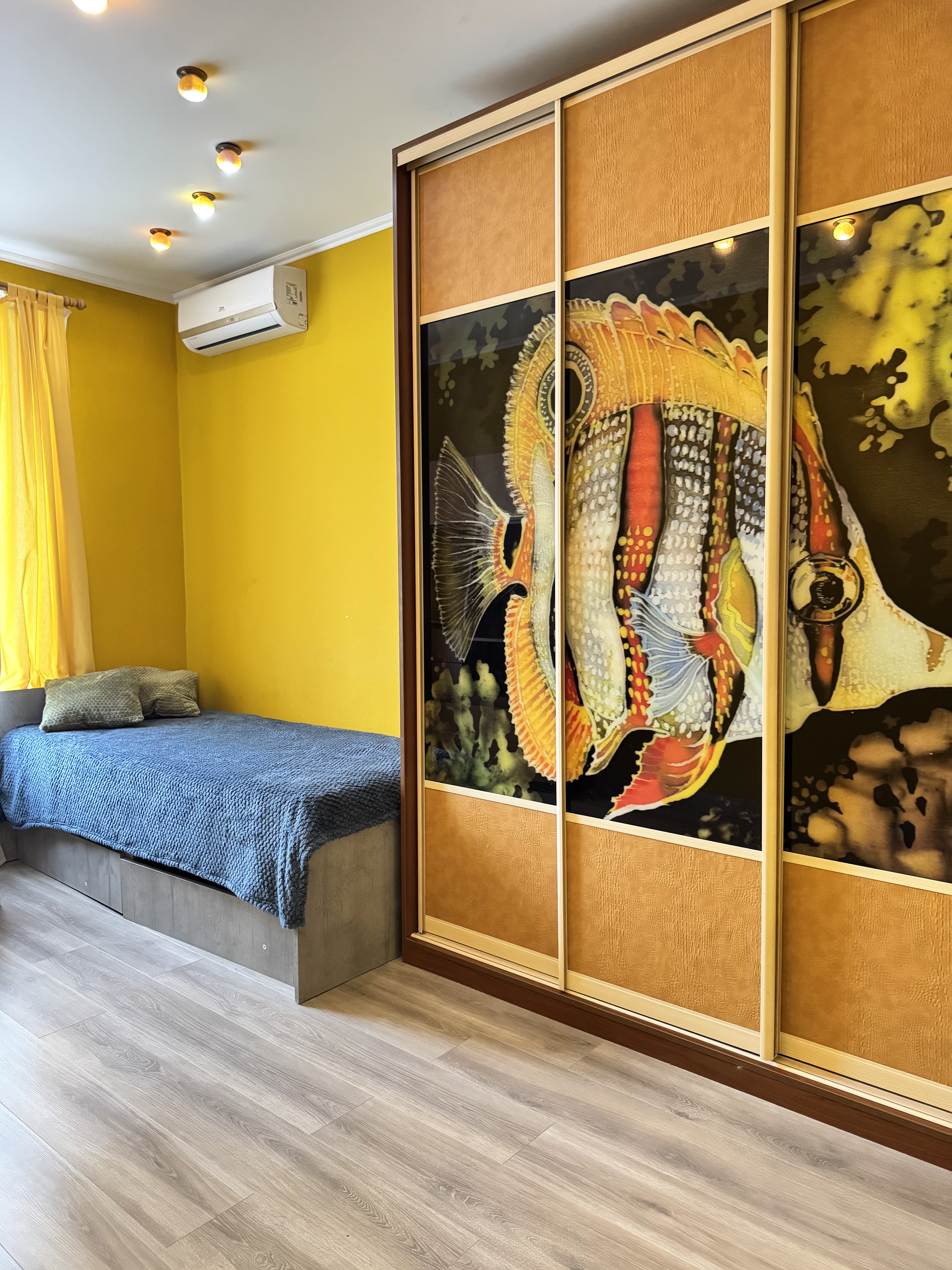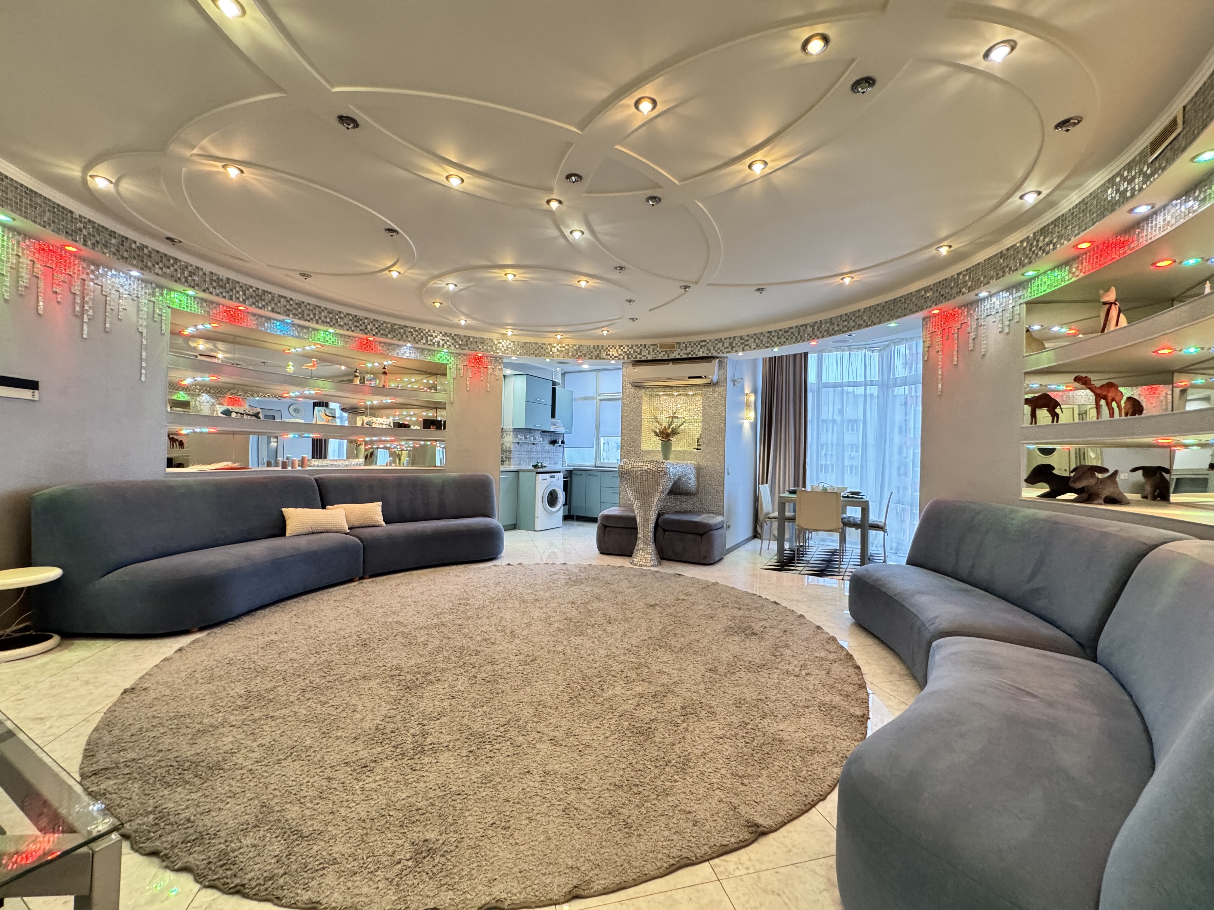 Квартира укомплектована. Має всі необхідні меблі та техніку.Багато шаф для зберігання одягу та речей. Приймаючи ванну ви зможете милуватися рибками, які живуть в акваріумі - незвичайний перестінок між дитячою кімнатою та ванною.