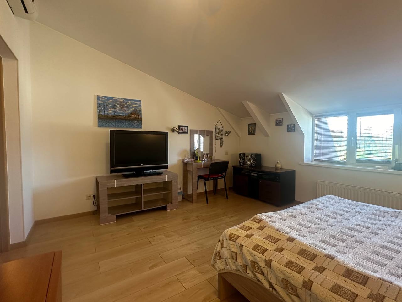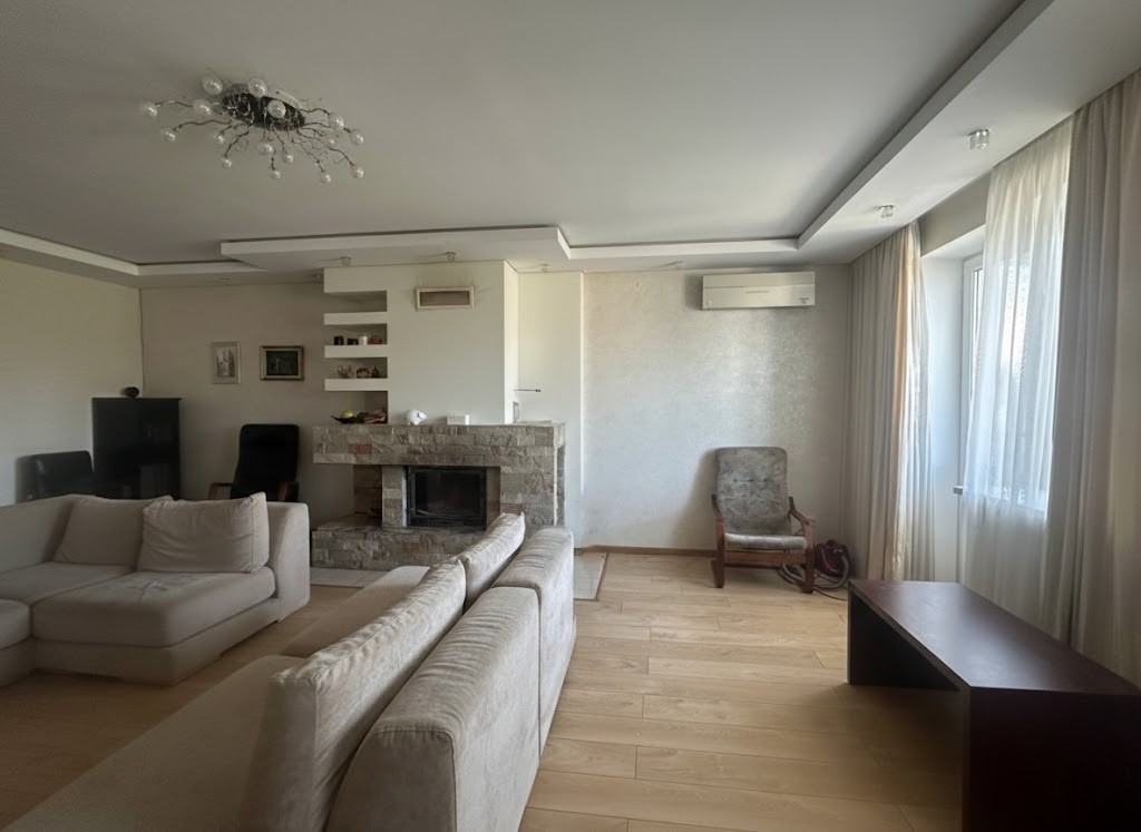 ID:568 У продажу чотирикімнатна дворівнева квартира з загальною площею 229м², з ремонтом, технікою та меблями (все залишається). Цегляний будинок на п’ятому поверсі п’ятиповерхового будинку. В будинку є ліфт. Центр Ворзеля, тиха вулиця, закрита територія та доглянутий двір, дитячий майданчик у дворі. Поблизу школа, кав’ярні, дитячі садки, супермаркет і багато іншого. Зручне планування: на першому поверсі коридор, кухня-студія, с/в, вітальня, великий балкон, під сходами комора. На другому поверсі чотири окремі спальні (18,3; 26,3; 18,0; 20,7), с/в, гардероб. Багато вікон - світла та затишна. Ремонт із якісних матеріалів, вбудовані меблі. По всій квартирі розведена тепла підлога. П’ять кондиціонерів, пральна і посудомийна машинки, телевізори, вмонтована мікрохвильова та духова шафи, витяжка, холодильник, бойлер на гарячу воду. Опалення центральне, встановлене безперебійне електроживлення. Мінімальне оформлення (всього 2%). Без комісії для покупця. Під державні програми - так.