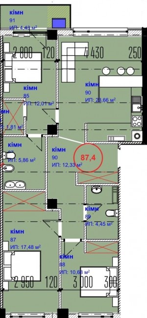Загальна площа: 88 кв.м