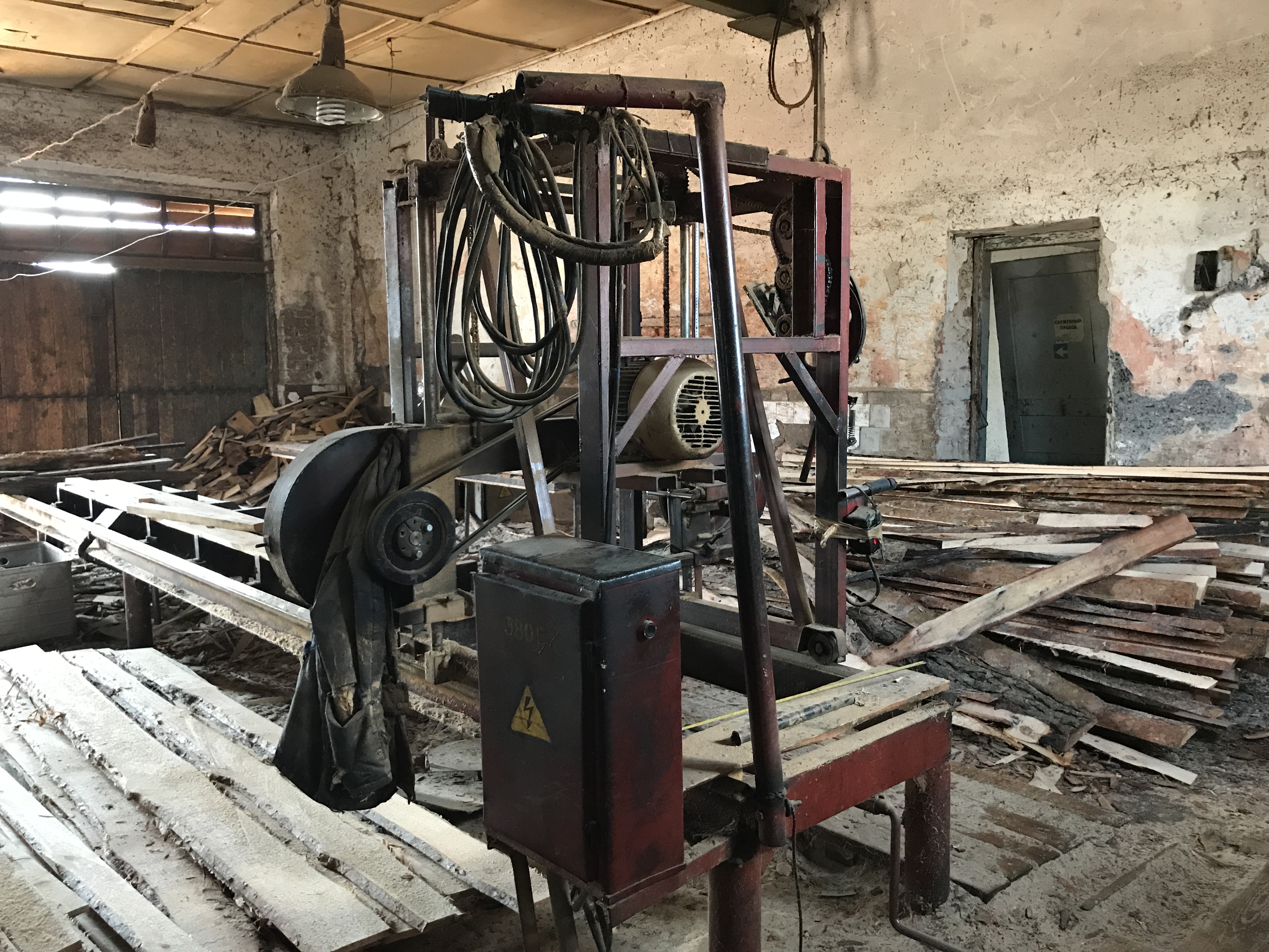 На территории действующая пилорама : вайма для склеивания, станок четырехсторонний (производство вагонки, пола, обналички и т.д), фрезерный станок, торцовочный станок, две пилорамы, две сушильные камеры по 20 кубов каждая.