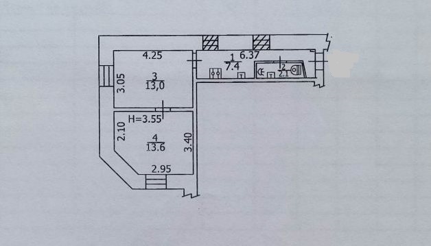 Загальна площа: 37 кв.м