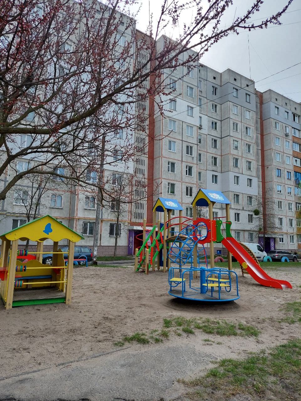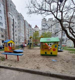 Очень аккуратный дом, чистый подъезд, ухоженный двор с детскими площадками.
