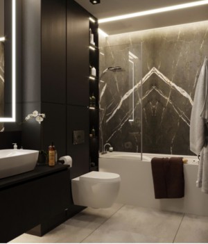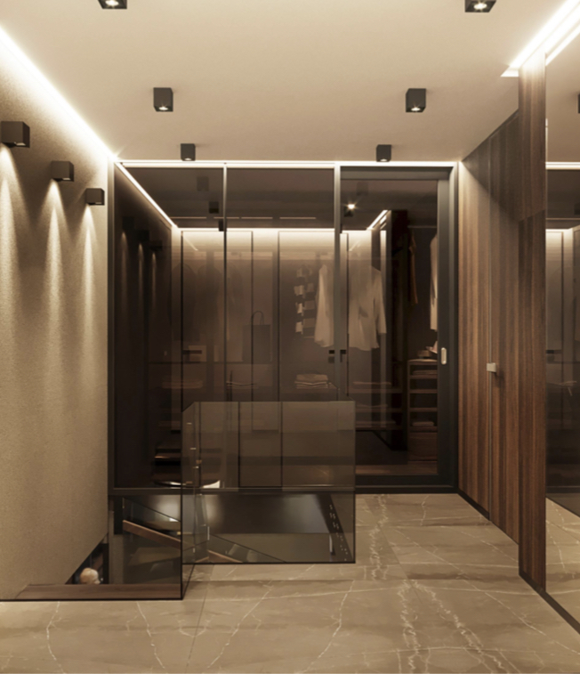 Два санузла, Постирочная, Два балкона, Гардероб с оригинальными стеклянными дверями с доводчиками, спальня и кабинет на 2 этаже. На 1 этаже Кухня/Гостиная 40м2 с Биокамином (под него сделана закладная). Двери входные бронированные, межкомнатные двери - высокие под потолок HI-STONE (керамогранит). В подъезде круглосуточно Консьерж, камеры видеонаблюдения. Паркоместо в подарок!