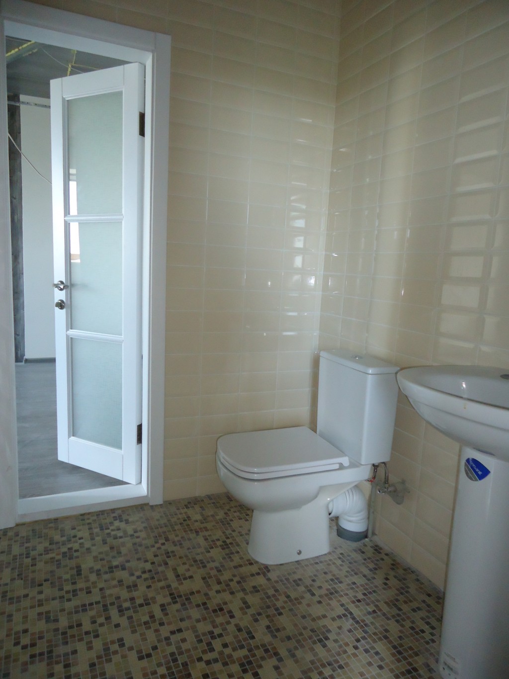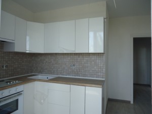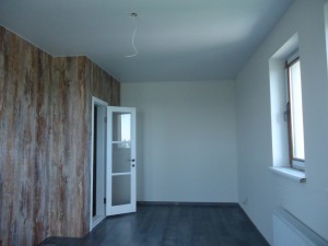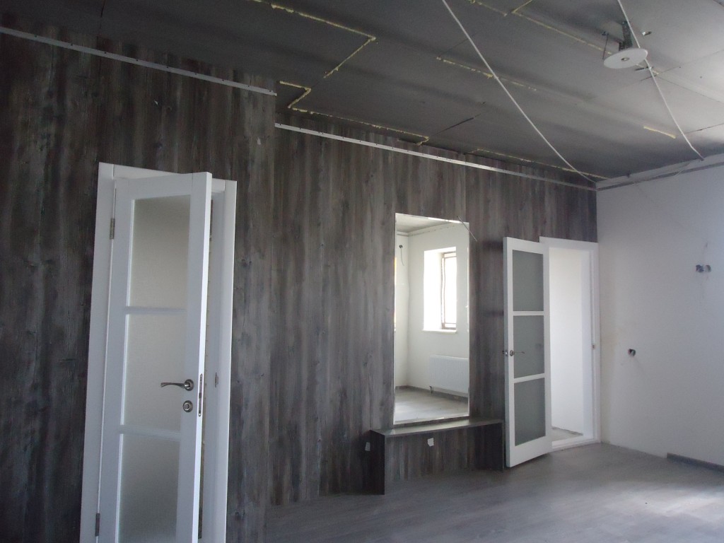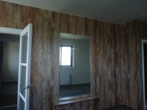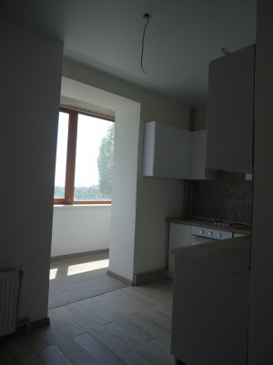Стіни -фактурна штукатурка,в під'їзд' та в квартирі на полу в під'їзді плитка а в квартирі ламінат та плитка,також в квартирі на стінах плитка в санвузлах та на кухні,ремонт в квартирі завершений на 90 відсотків.