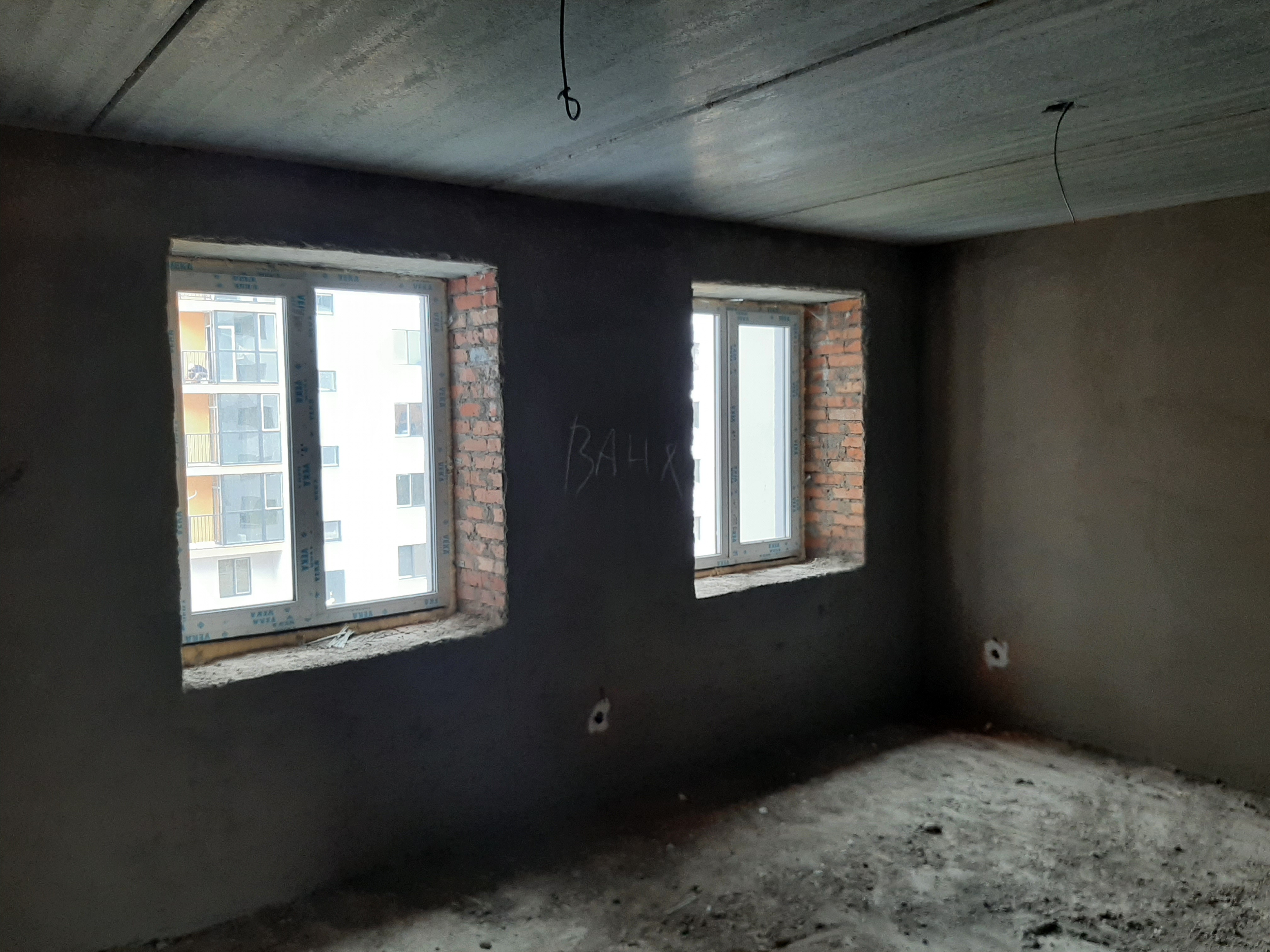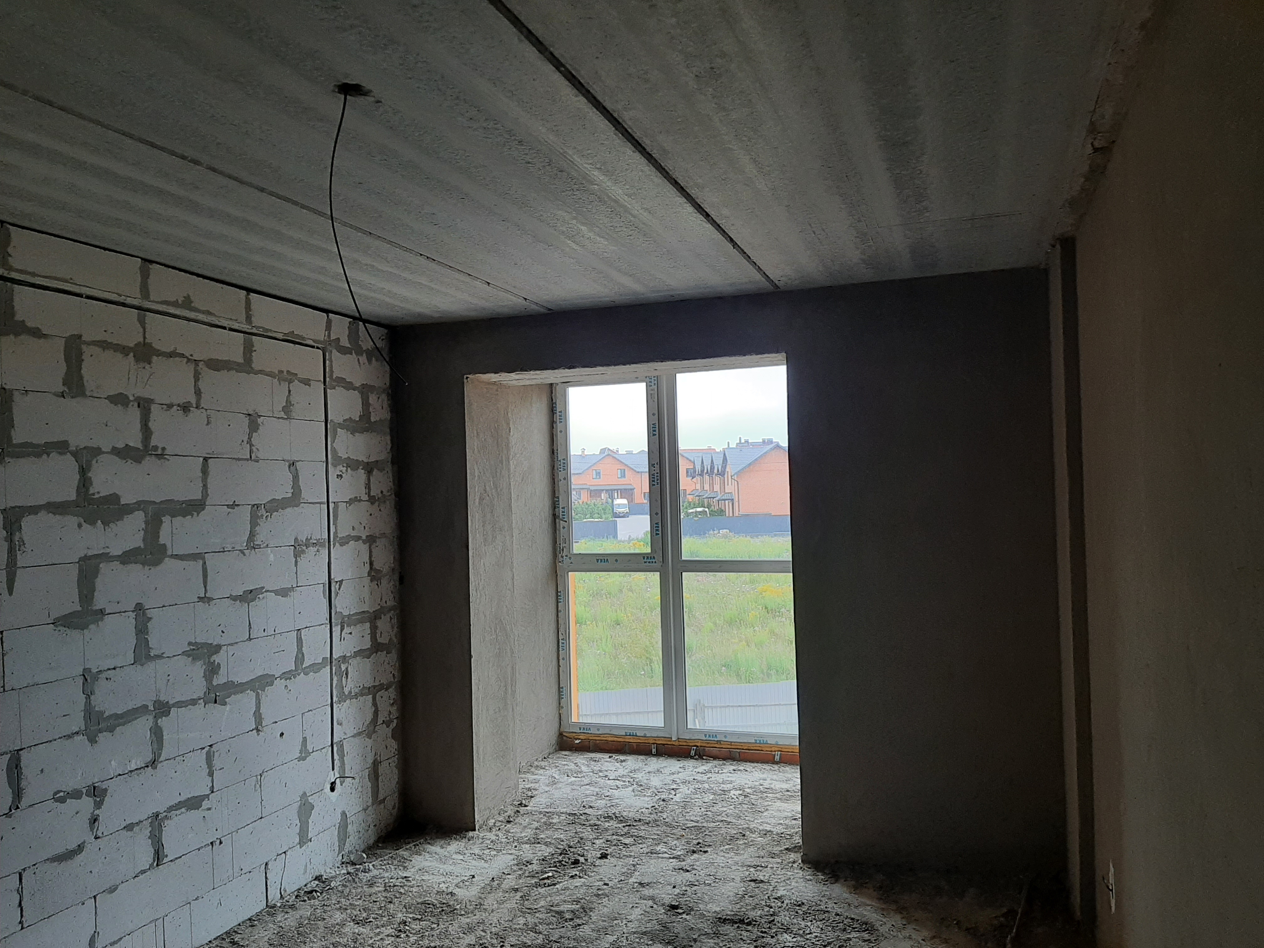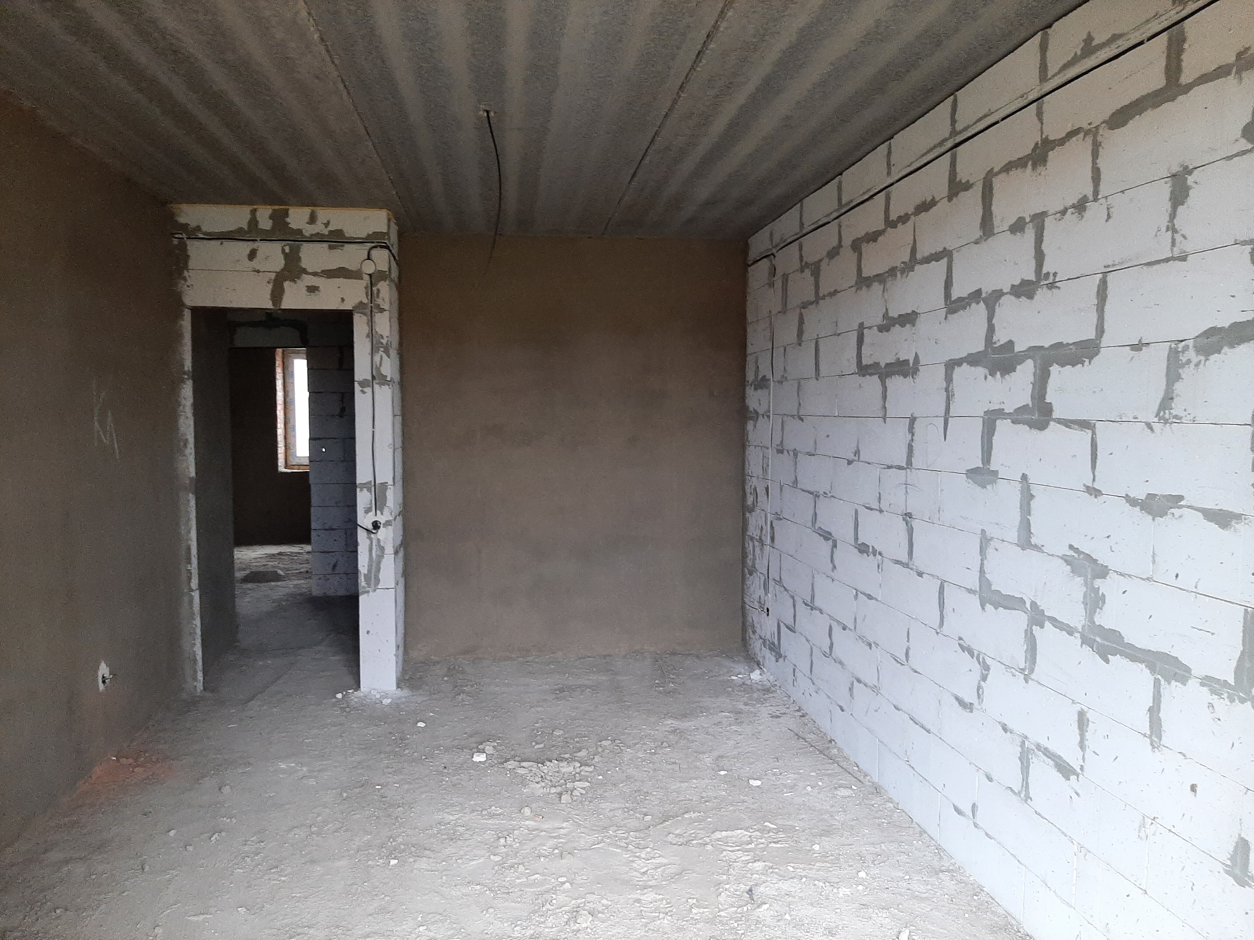 Поштукатурені всі цегляні стіни.