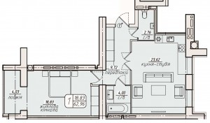 Загальна площа: 61.5 кв.м