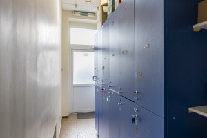 Має 3 входи, з яких - 2 фасадних і 1 пожежний (з внутрішнього двору).